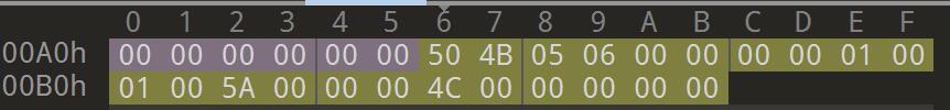 0xBA~0xBB字节为00 00为ZIP 文件注释的长度